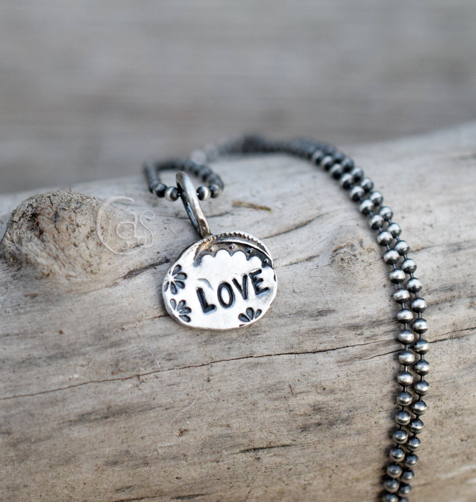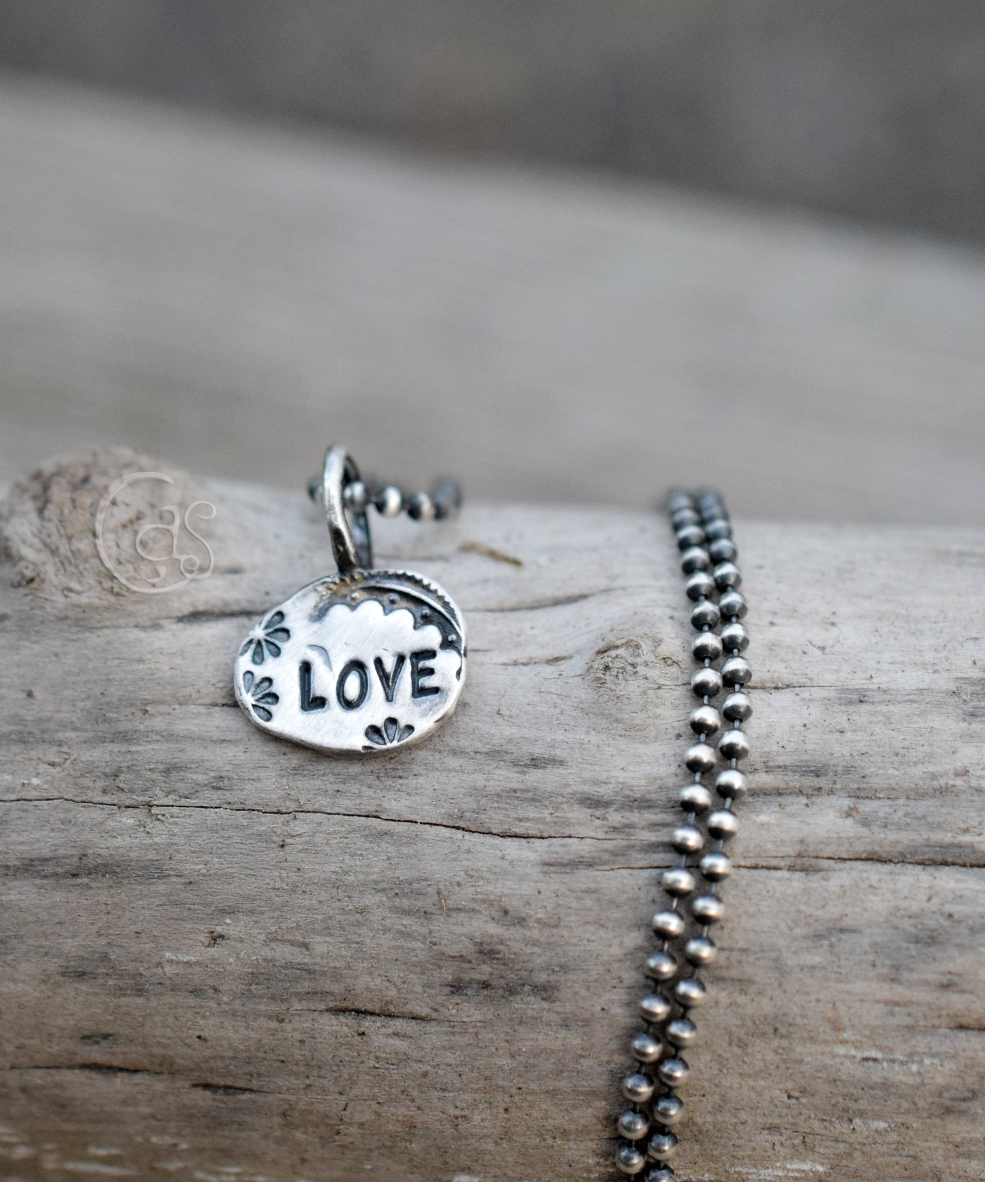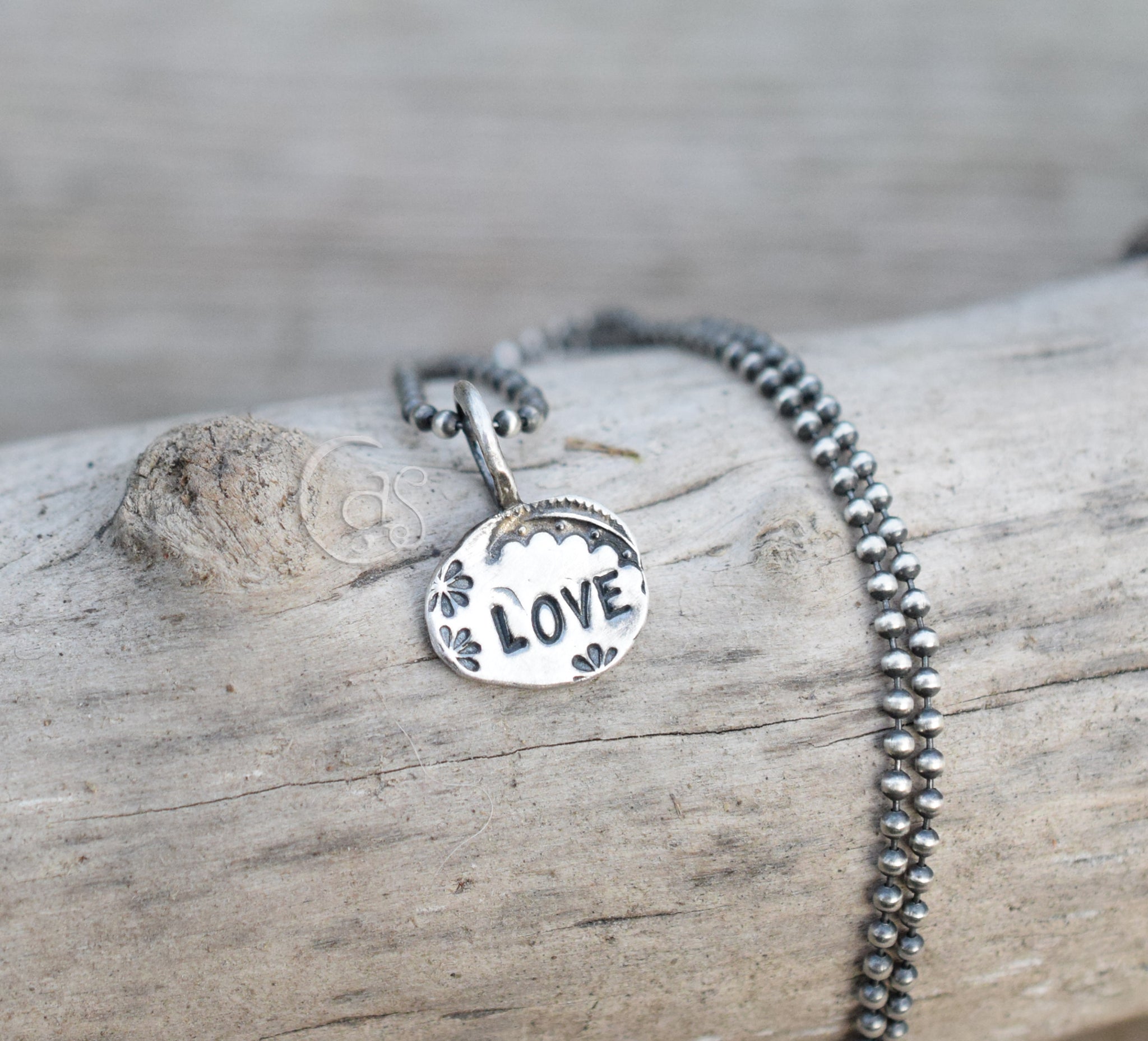 Love Charm. Pure Silver Hand Stamped Chain Sold Separately